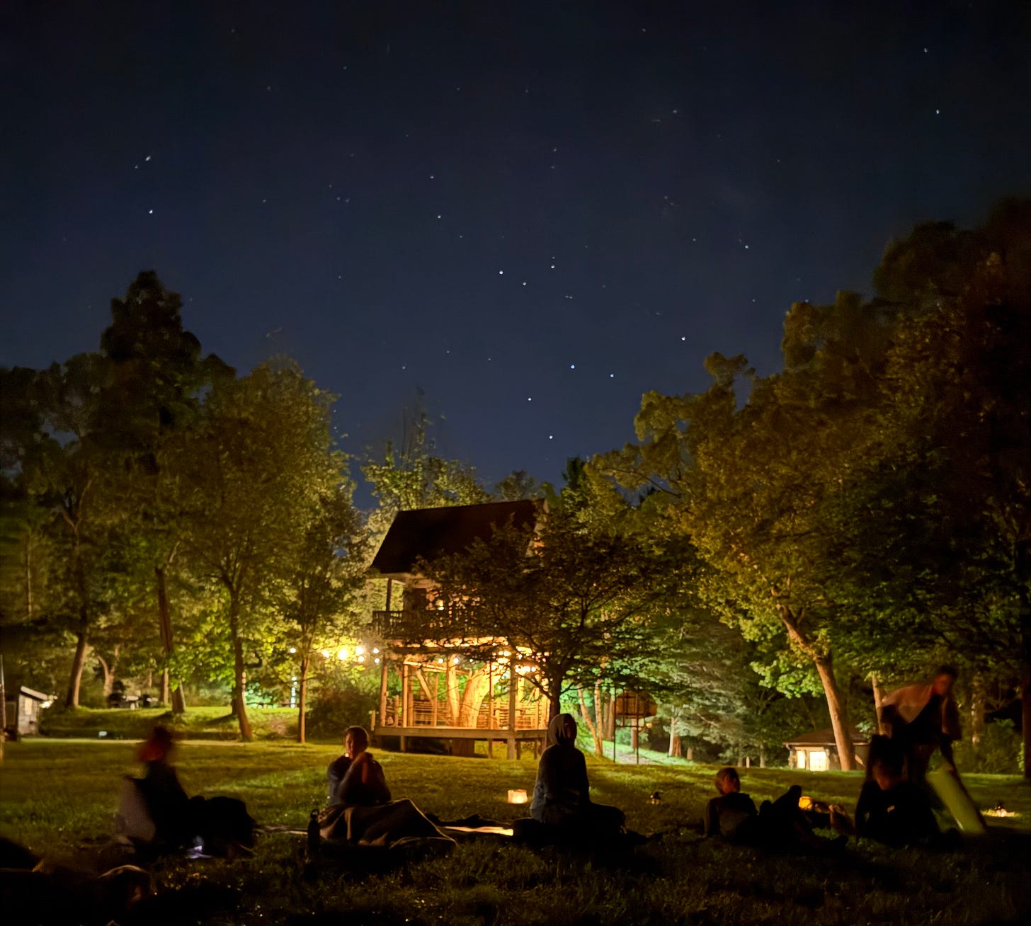 Most people will allow me to do just that because, honestly, they prefer to bathe in the sound of their own voice. But you know who I could not get away with that around? A handful of writers gathered in the dew-damp grass underneath a crooked treehouse, the sky a velvet blanket above our heads, covered in a thousand tiny pinpricks that turned out to be the entire universe.