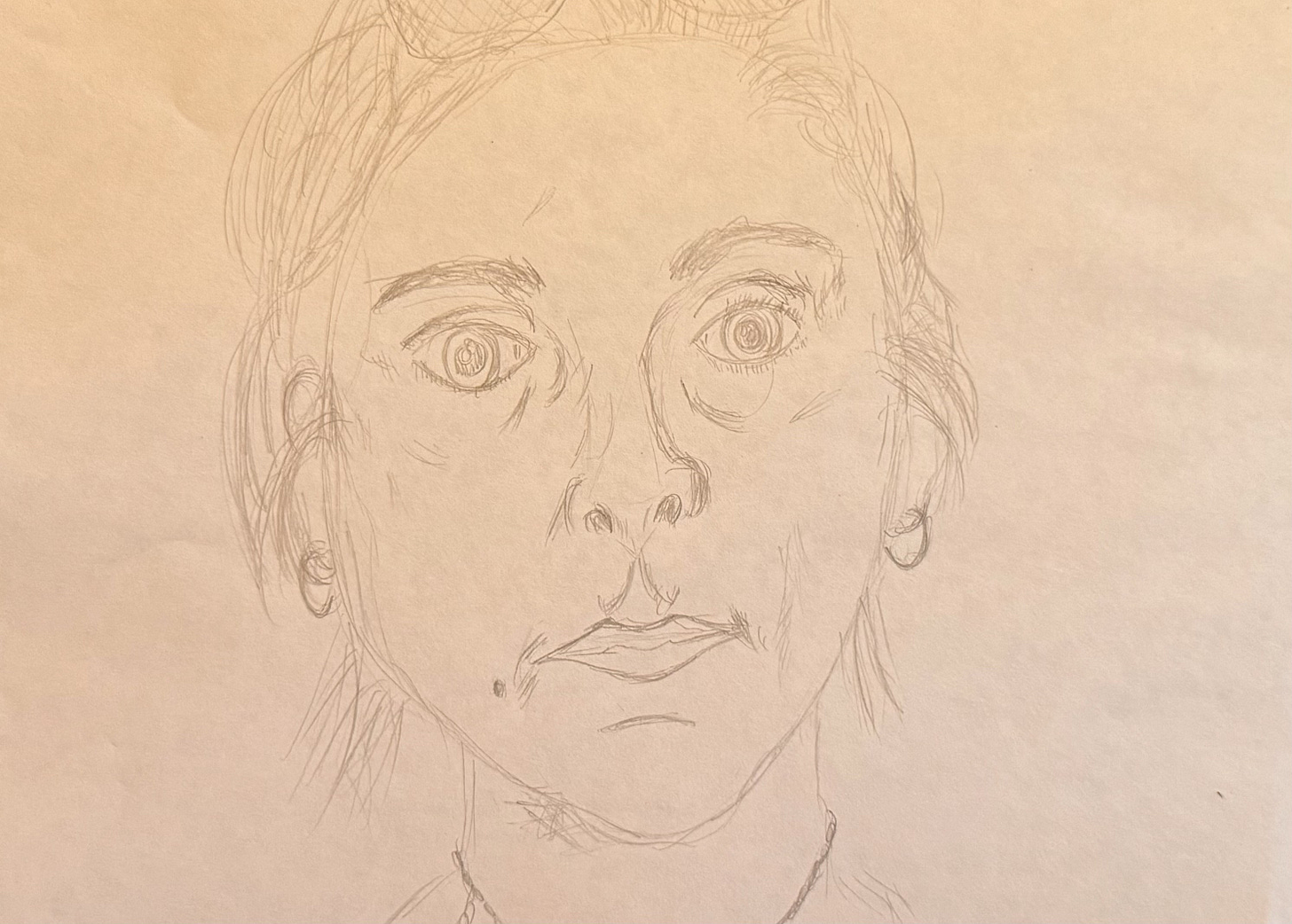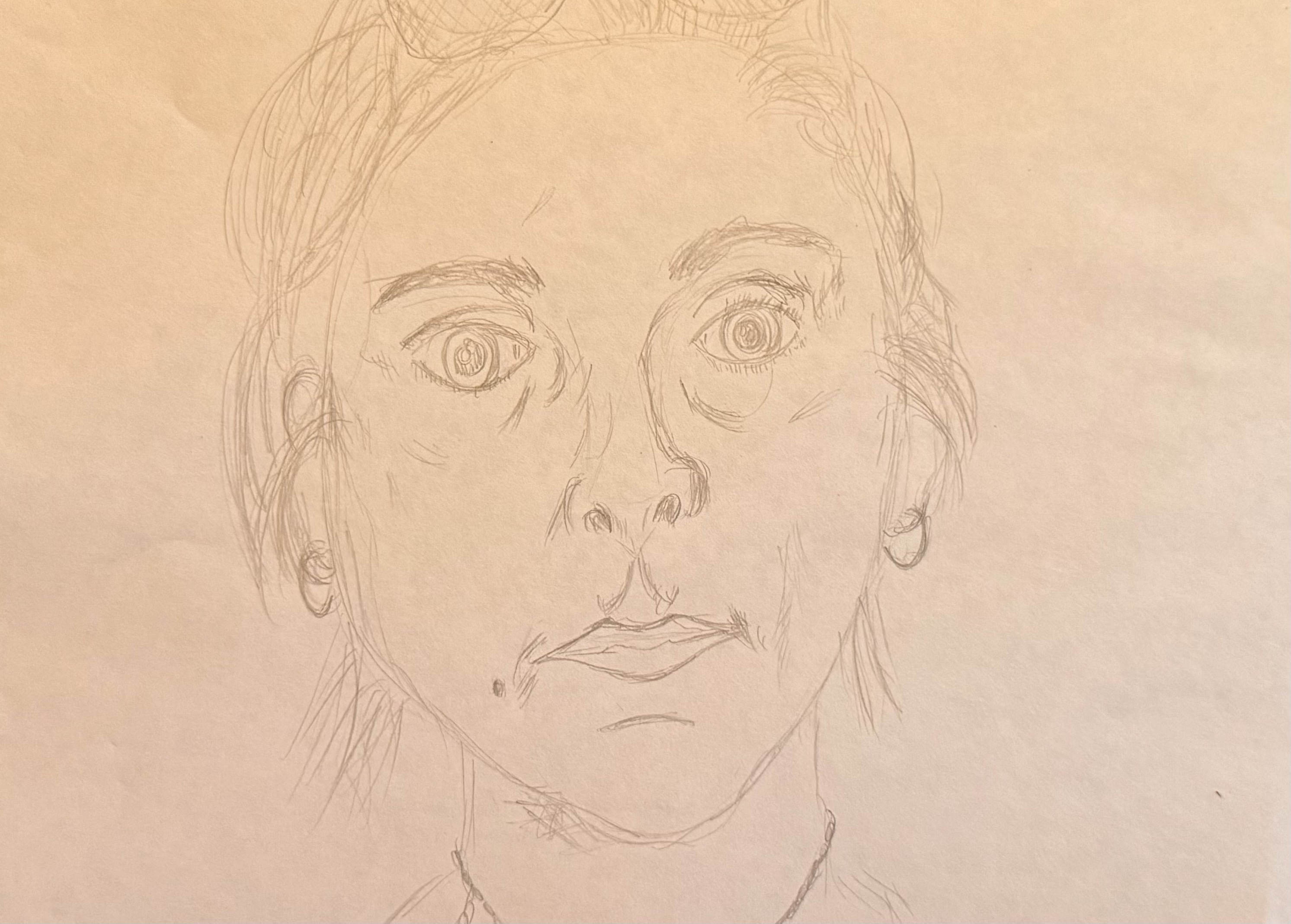 The final prompt was to draw something a little bigger and we were given an A4 piece of paper. Its wide blankness intimidated me. We could take a mirror, Billie said, and try for a self-portrait if we wanted. I peeled the protective sheet from the mirror (they were brand new) and my face came into focus. For a moment, I was back in that bathroom, realising that the way I looked felt like a punishment. That having a body was a burden. And then I began to draw. I sketched the hollows under my eyes, the nose that my step-father always mocked for being so big, the eyebrows that used to meet in the middle. I sketched the point of my chin and the mole just to the left of my mouth. I didn’t see ugly or pretty. I just saw myself.
